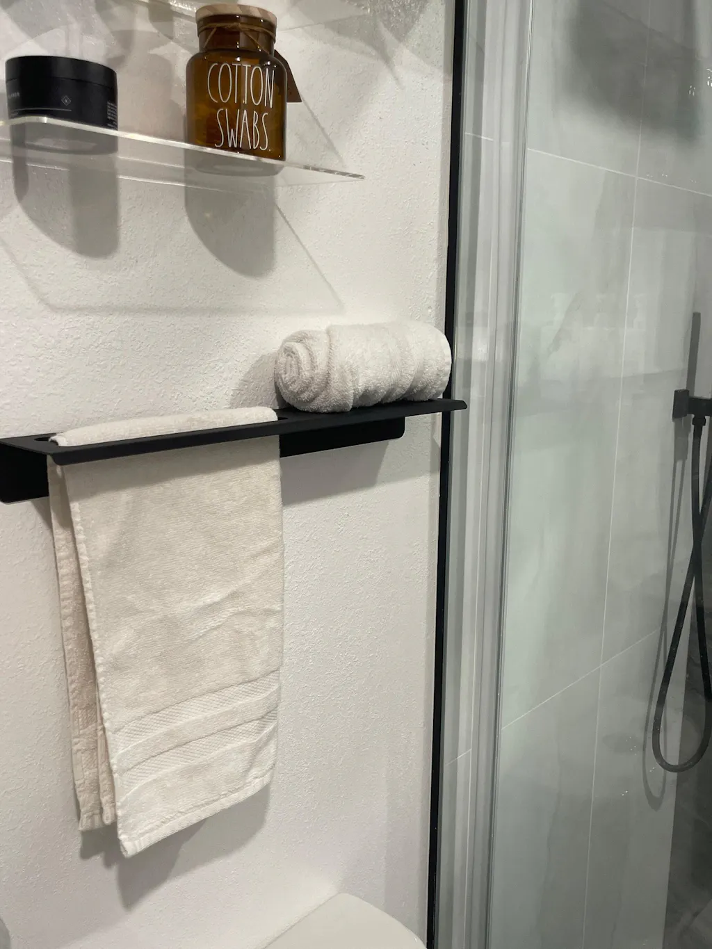 Bringen Sie moderne Eleganz in Ihr Badezimmer mit dem wandmontierten Handtuchhalter und Regal Horizo. Entworfen für minimalistisches Wohnen, vereint er Stil und Funktionalität perfekt. Bestellen Sie noch heute und profitieren Sie von schnellem weltweiten Versand in die USA, nach Kanada, Europa und darüber hinaus!